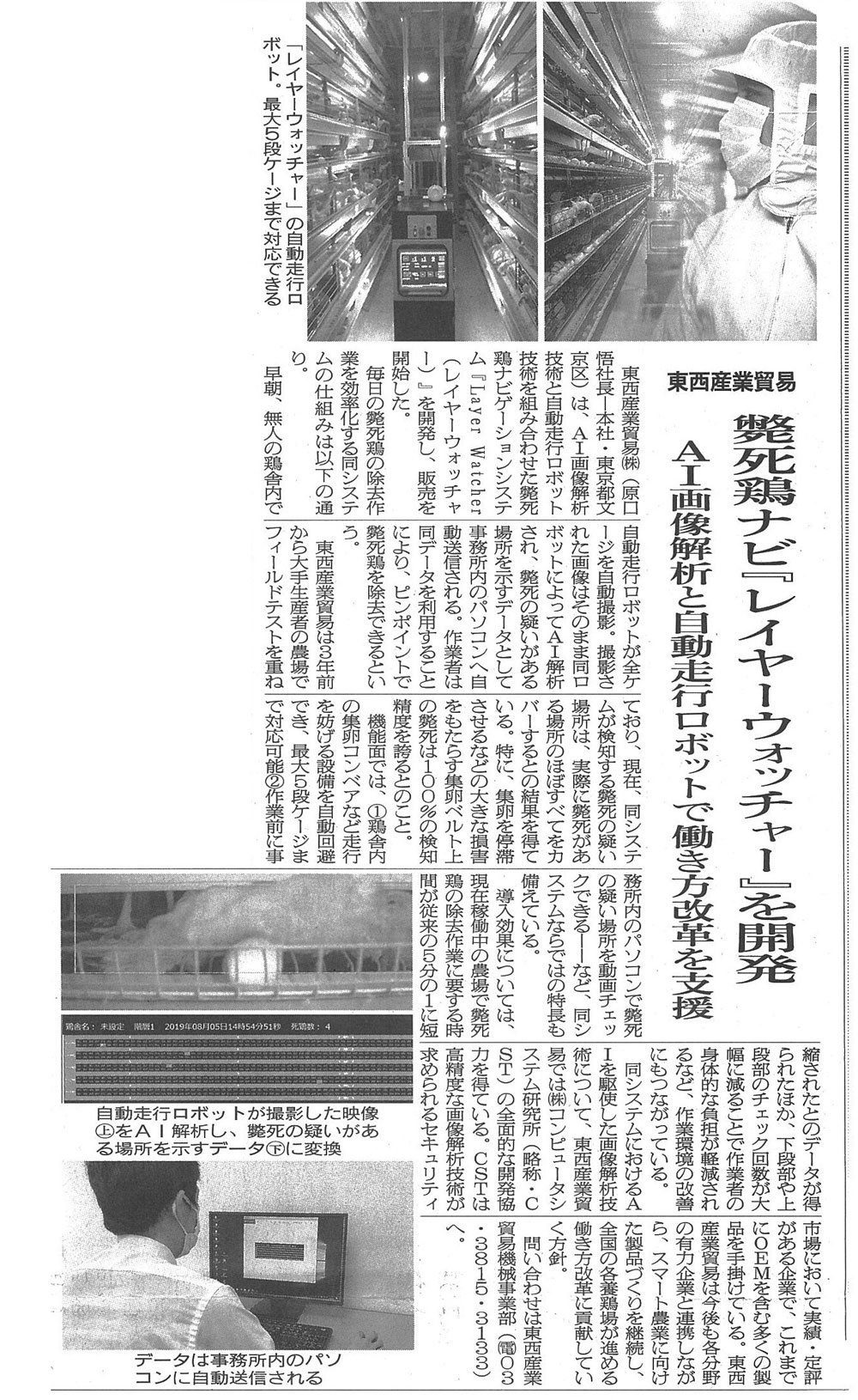 AI画像解析と自動走行の技術を組み合わせた斃死鶏ナビゲーションシステム“レイヤーウォッチャー”の発売を開始しました。